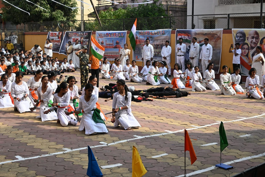 ७७ व्या प्रजासत्ताक दिनानिमित्त विविध सांस्कृतिक कार्यक्रम सादर करताना विद्यालयाचे विद्यार्थी